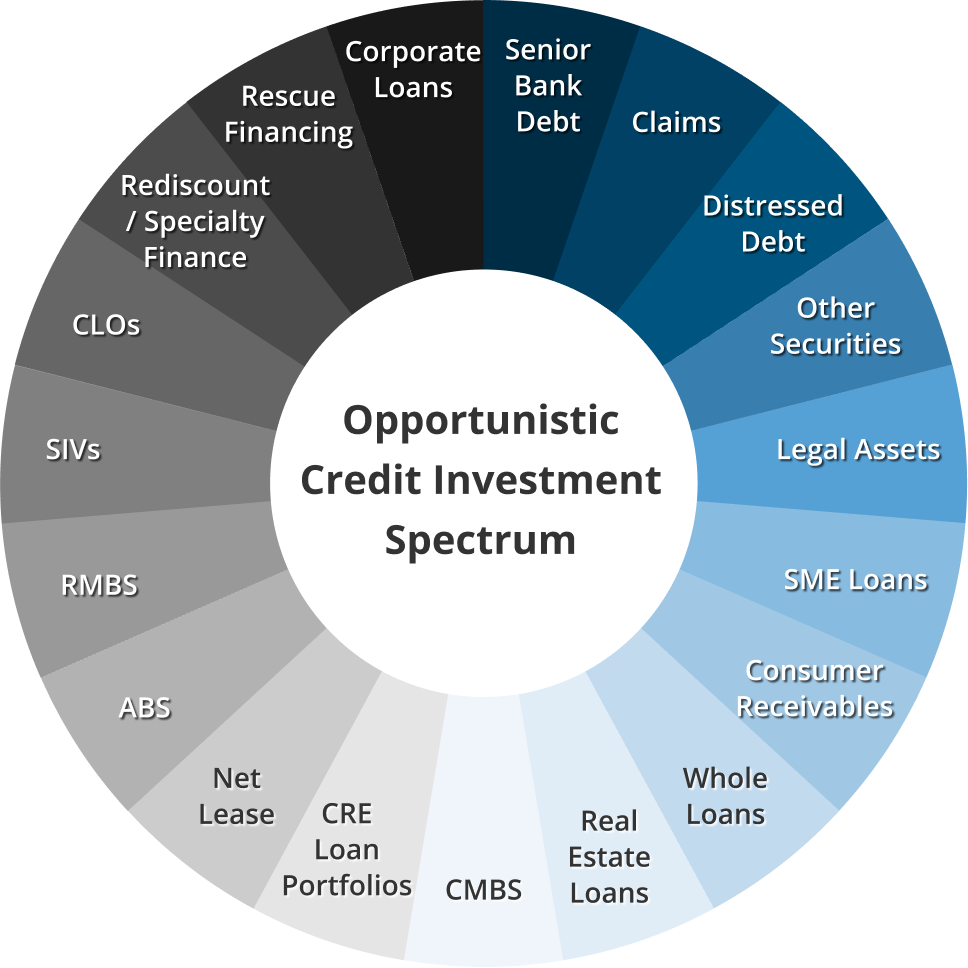 - Opportunistic investments in distressed and undervalued credits / assets across a wide range of asset classes and structures.
